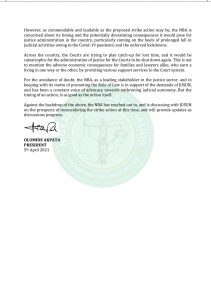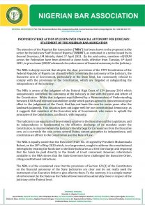 The Nigerian Bar Association, NBA through its President, Mr. Olumide Akpataa is in talk with the Judicial Union Staffs Association of Nigeria, JUSUN, urging them to shelve the proposed strike due to disruption in the Judicial calendar, orchestrated by COVID-19 pandemic.