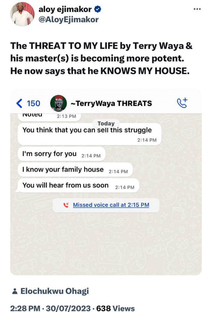 Following the release of the letter, Ejimakor has been receiving threats from various quarters, including Waya.