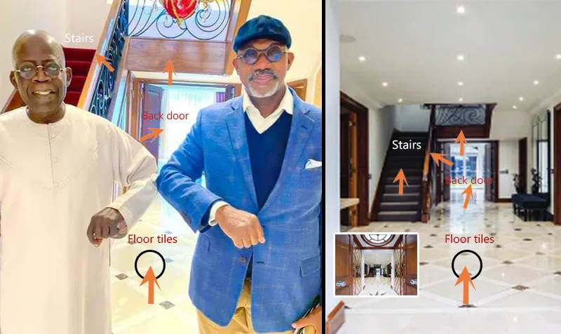 Tinubu inside his London mansion with a Nigerian governor, Dapo Abiodun (graphic by Premium Times).