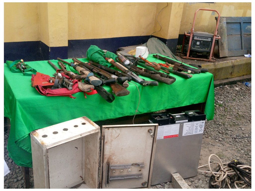 Some of the exhibits include firearms of different specifications, 10 vehicles, eight tricycles, railway slippers, and substances suspected to be illicit drugs, among others.